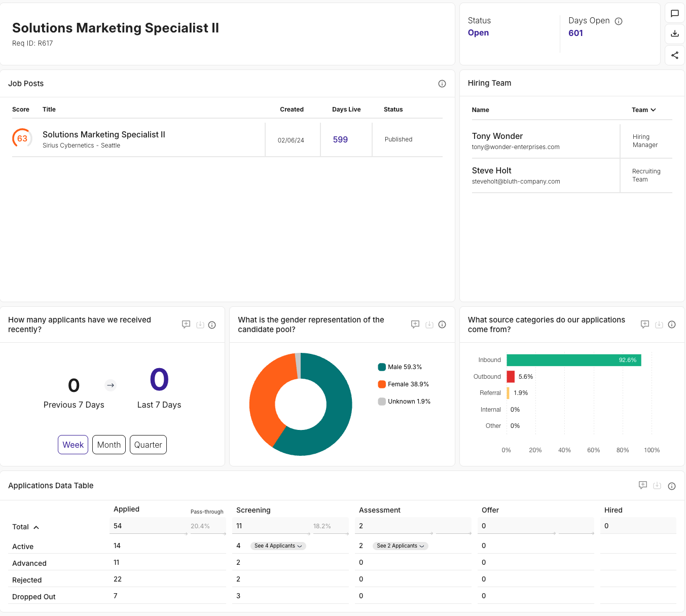 Datapeople's Requisition Progress Report focuses on the activity of a single requisition from creation to closure. It can answer questions like: