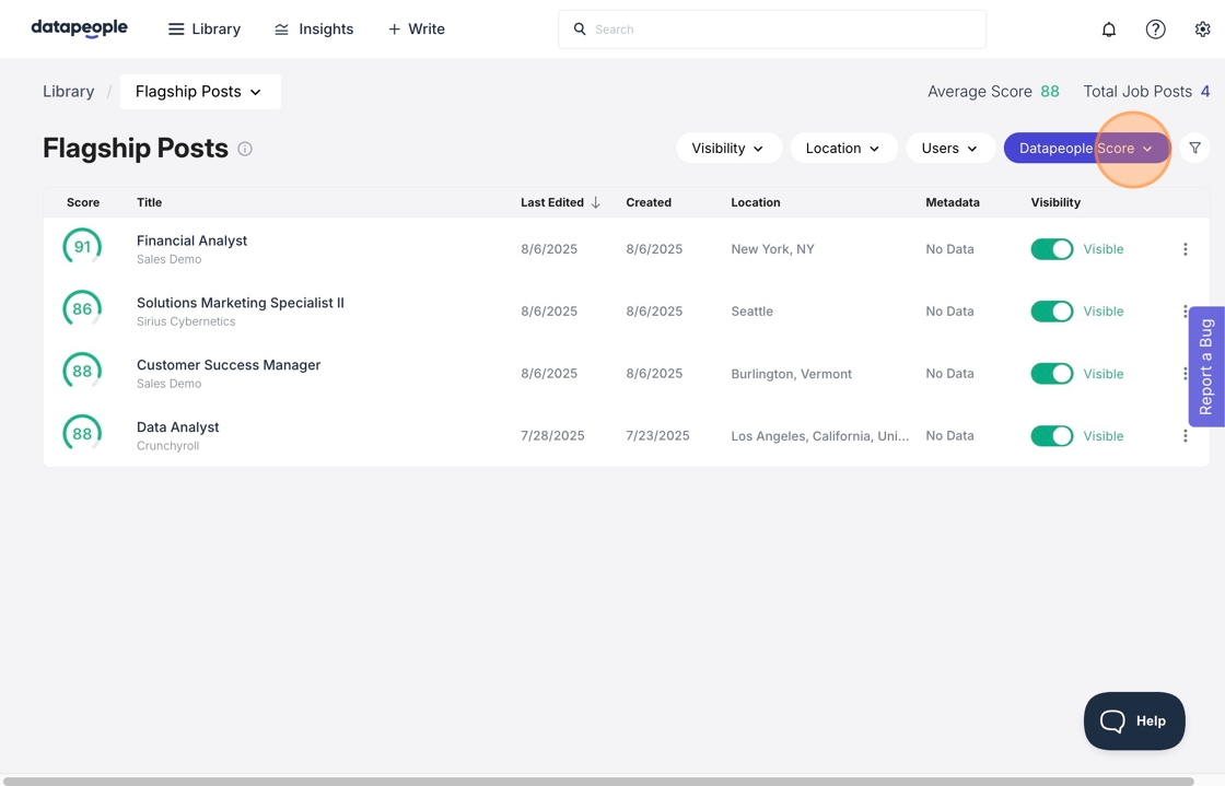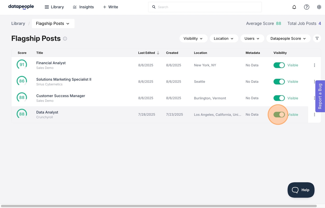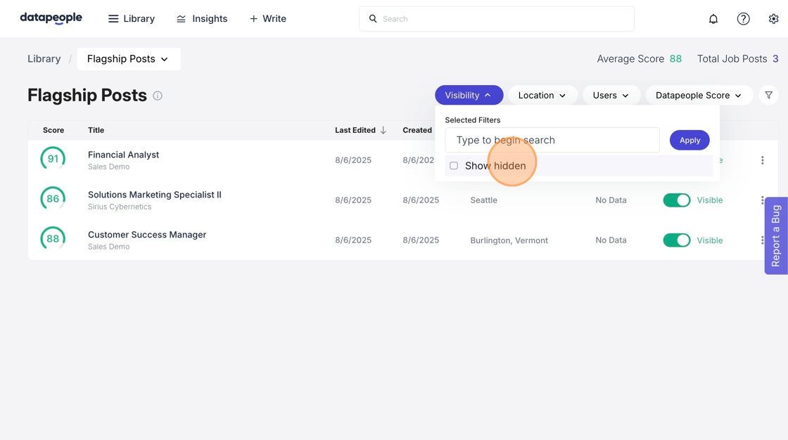 4. Filter by visibility to view your hidden Flagship Jobs.