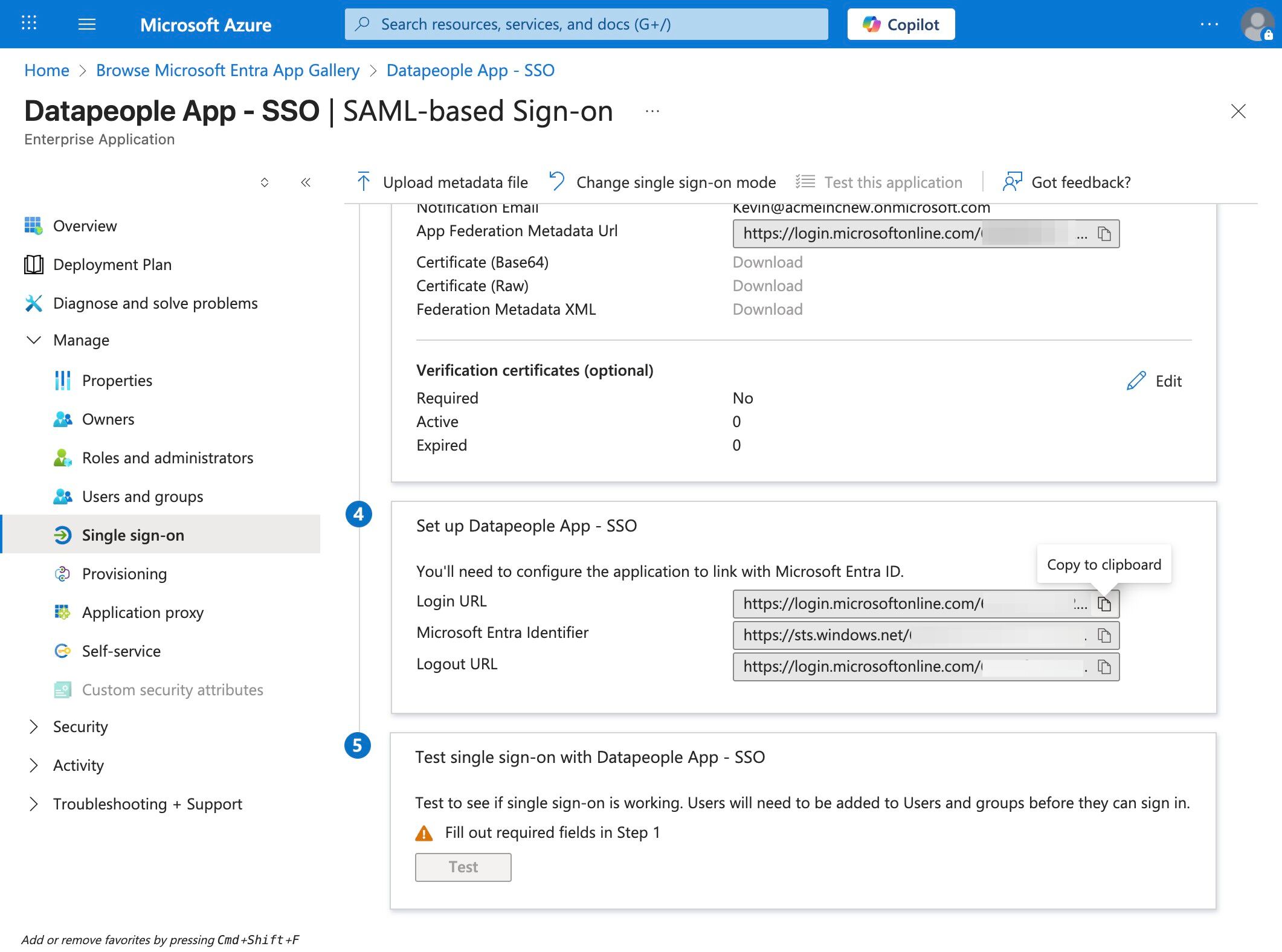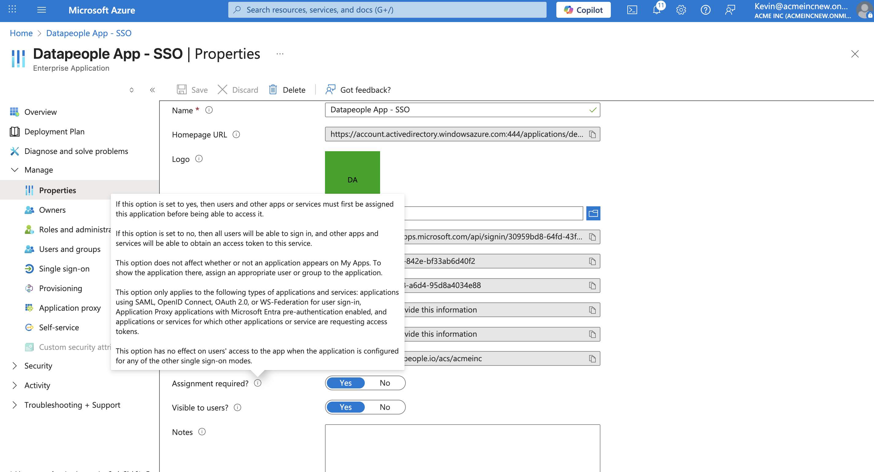 14. By default, your Entra application will not allow any users to login to Datapeople. You can do two things: