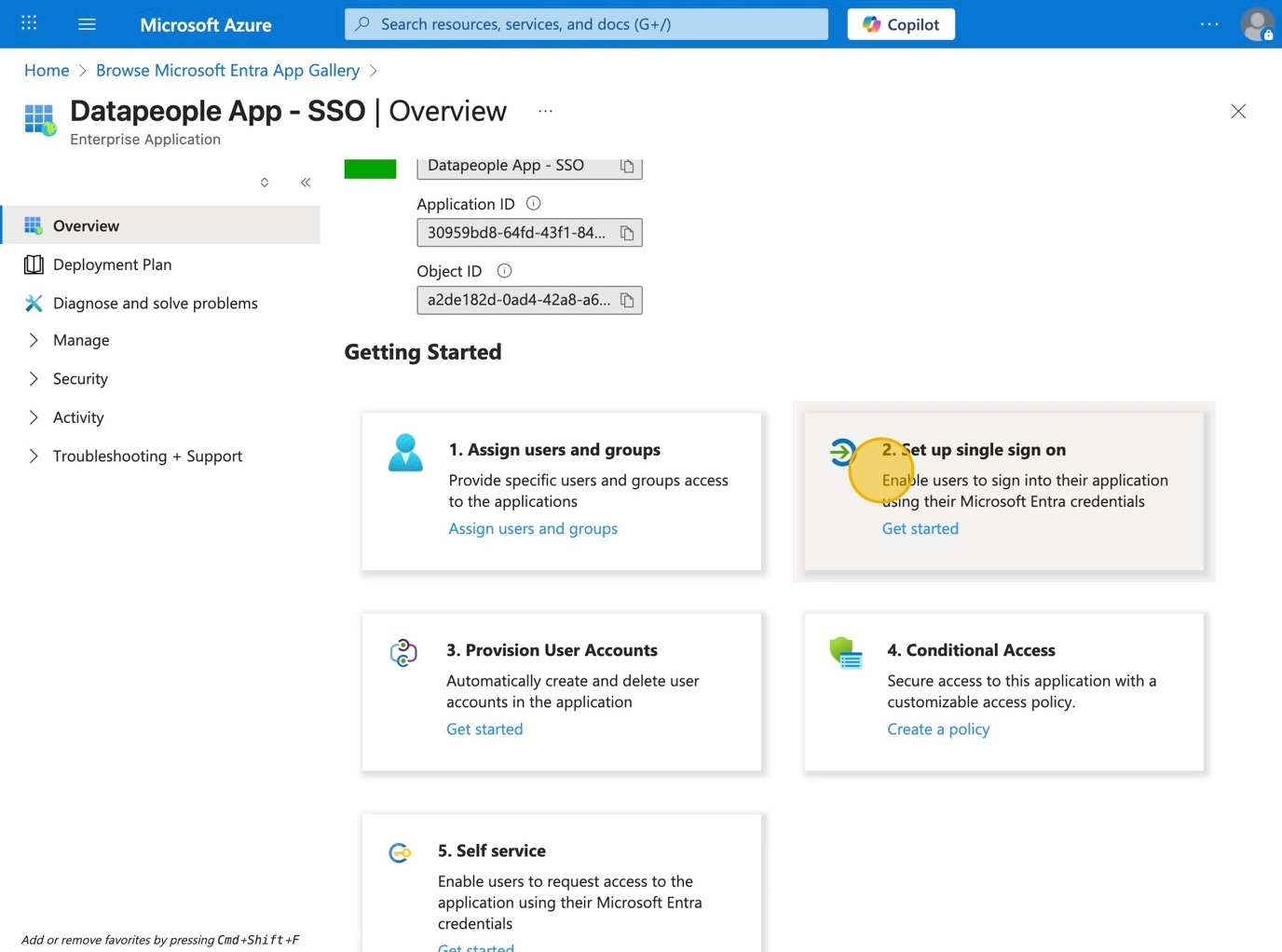 - Limit access to certain groups of users via SSO user groups. You should use the Assign users and groups flow in Entra.