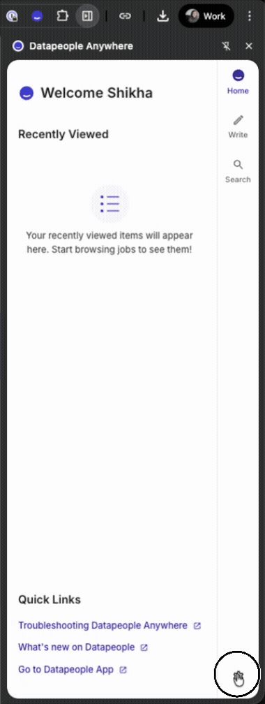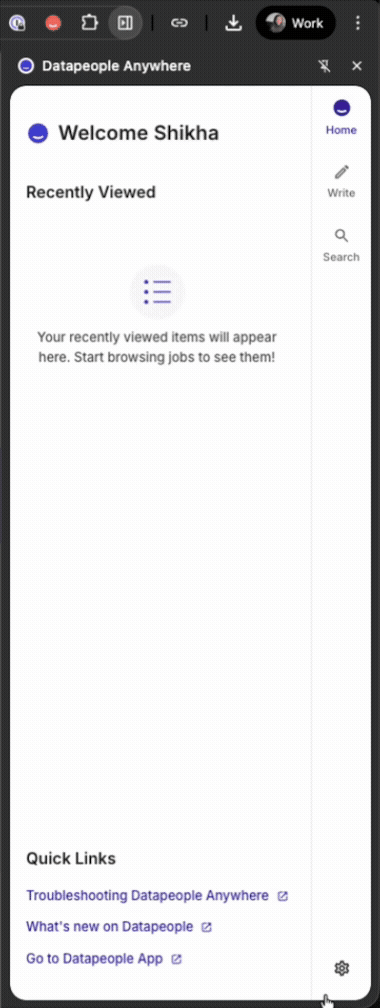 1. Typically, most customers have Datapeople Anywhere pointing to their production environment. You can see this represented in your pinned extensions as a purple logo.